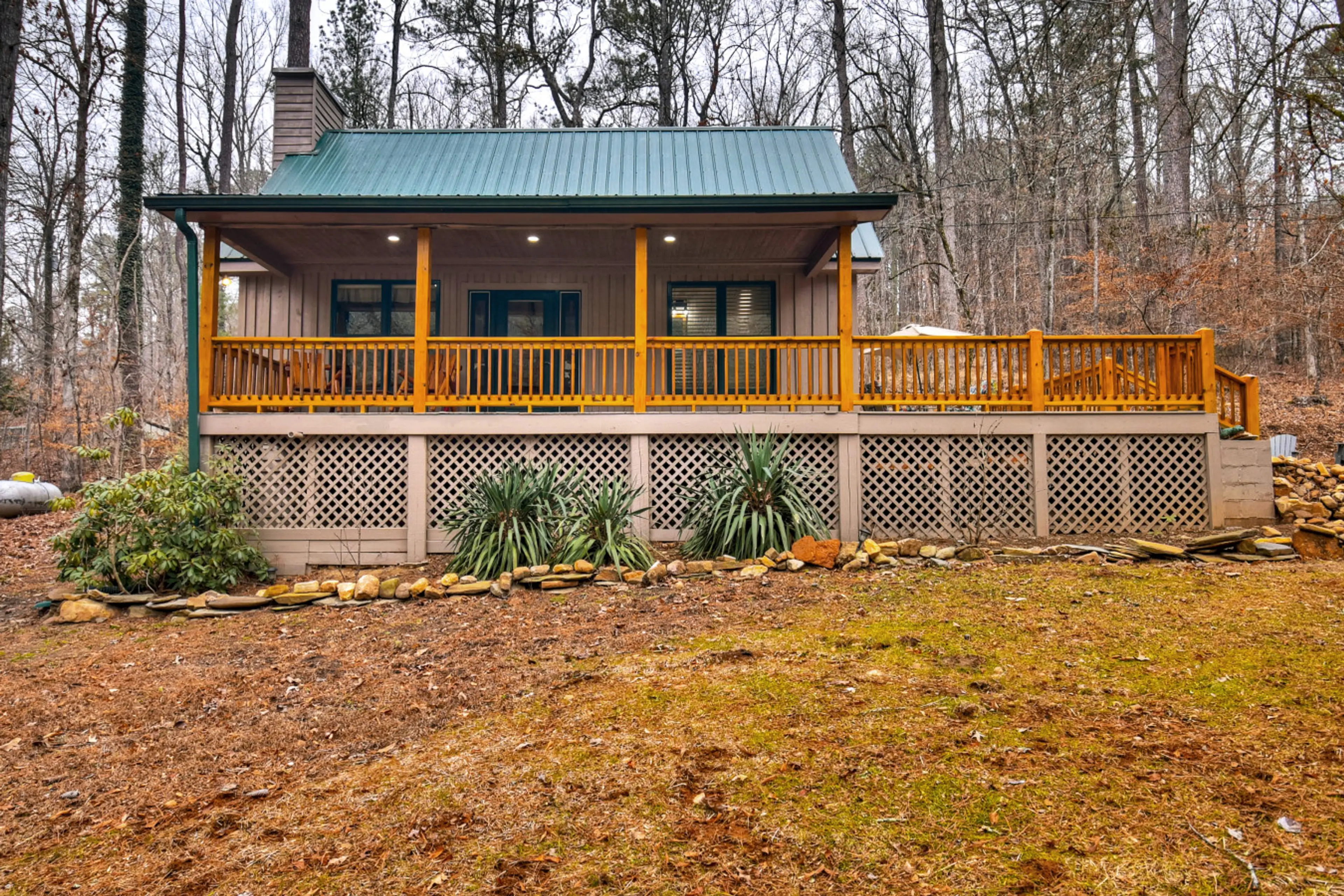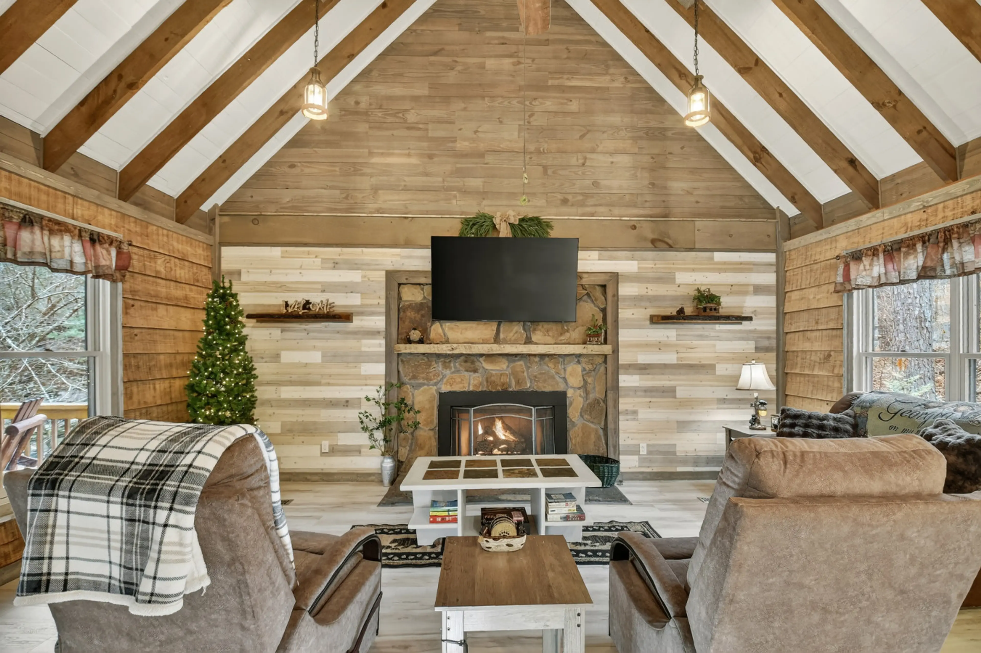 Driftwood Cabin, Talking Rock, GA A Beautiful A frame cabin that sleeps two for a nice and quiet get-away, gorgeous riverfront setting, hot tub, gas log fireplace, rocking chair front porch, fire pit and all the modern conveniences. Completely remodeled inside and out! As you walk into this tradi...